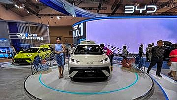 Pada booth seluas 1,575 meter persegi yang berada di Hall 10, ICE BSD, Tangerang, BYD menampilkan 10 unit dari 6 model mobil listrik EV yang telah dipasarkan di Indonesia.
