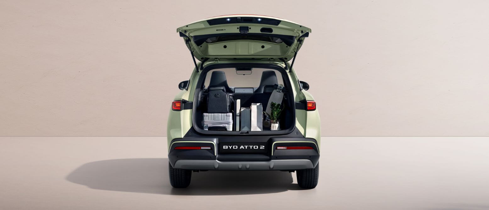 Lampu depan LED, lampu belakang model lightbar yang selebar bodi dan gaya bodikit aerodinamis membedakannya dari Atto 2 EV standar.