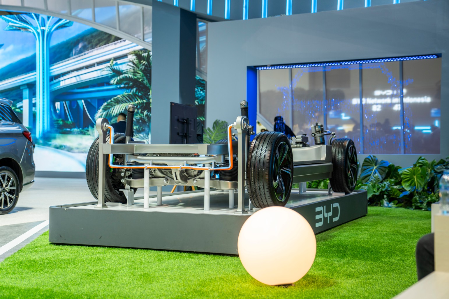 Booth BYD juga dilengkapi dengan berbagai zona edukasi teknologi. Termasuk area e-Platform 3.0 yang menampilkan arsitektur dasar kendaraan listrik BYD. Brand Matrix yang menggambarkan ekosistem merek BYD Group, serta area pencapaian dan penghargaan. Sebagai validasi independen atas kualitas dan inovasi BYD.