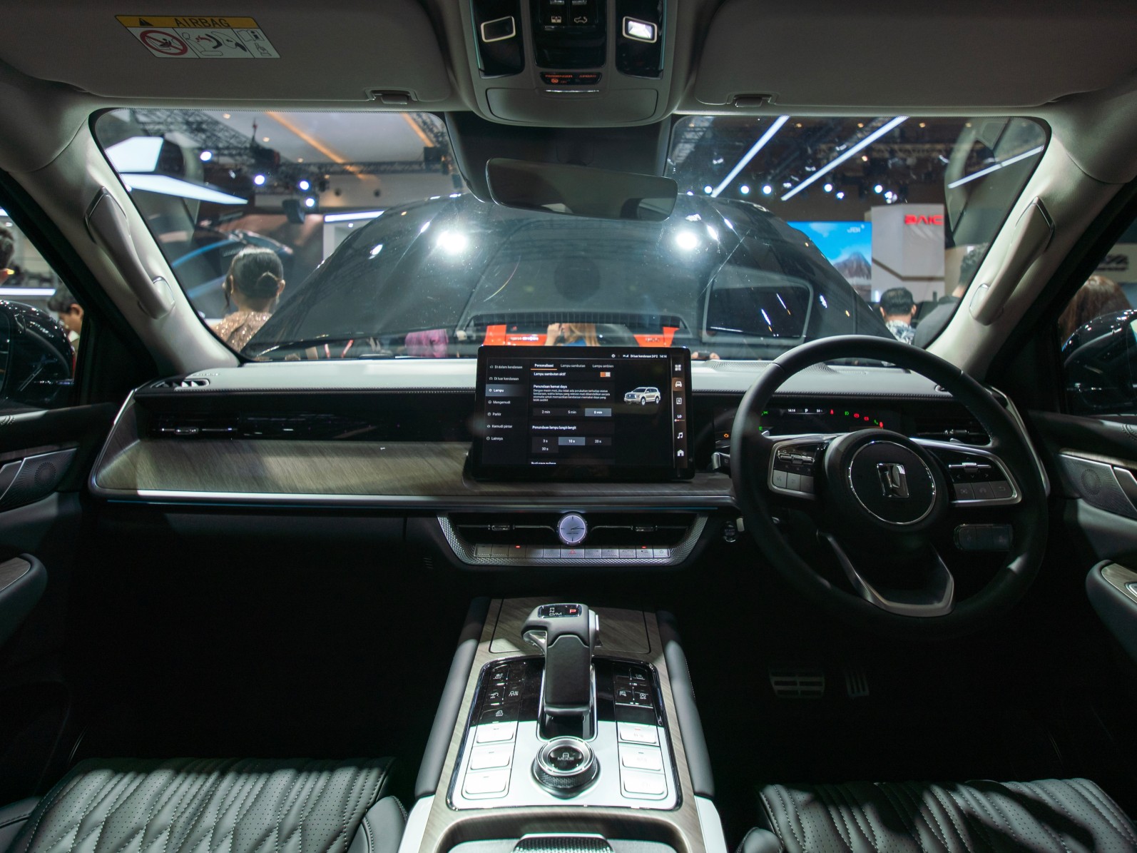 Begitu membuka pintu, filosofi Drive First Class, Everywhere langsung terasa. Kabin dirancang bak lounge bergerak. Balutan Nappa Leather pada electric seat, ventilated seats, dan Massage Function menjaga tubuh tetap rileks usai hari yang padat. Speaker sebanyak 12 unit tersebar di semua penjuru kabin. Wheelbase 2.850 mm memungkinkan tujuh kursi fleksibel, dan ruang lapang untuk keluarga serta barang bawaan.