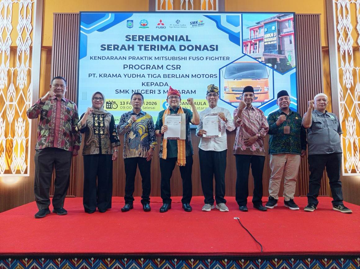 Terus berkomitmen untuk mendukung talenta muda Tanah Air, PT Krama Yudha Tiga Berlian Motors (PT KTB) mendonasikan satu unit Mitsubishi Fuso Fighter. Unit ini sebagai kendaraan praktik ke SMK Negeri 3 Mataram, Nusa Tenggara Barat. Penyerahan unit tersebut berlangsung pada 13 Februari 2026 silam.