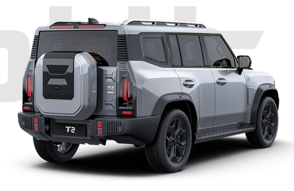 Jetour T2 hadir sebagai SUV yang menonjolkan karakter petualang. Desainnya tegas dan berotot, lengkap dengan proporsi bodi berukuran medium—panjang 4.785 mm, lebar 2.006 mm, tinggi 1.870 mm, dan wheelbase 2.800 mm—yang memberikan kesan kokoh sekaligus menawarkan kabin lapang. Bagasi berkapasitas besar dilengkapi pintu elektrik dengan bukaan luas, memudahkan pengguna membawa perlengkapan outdoor maupun barang bawaan keluarga.