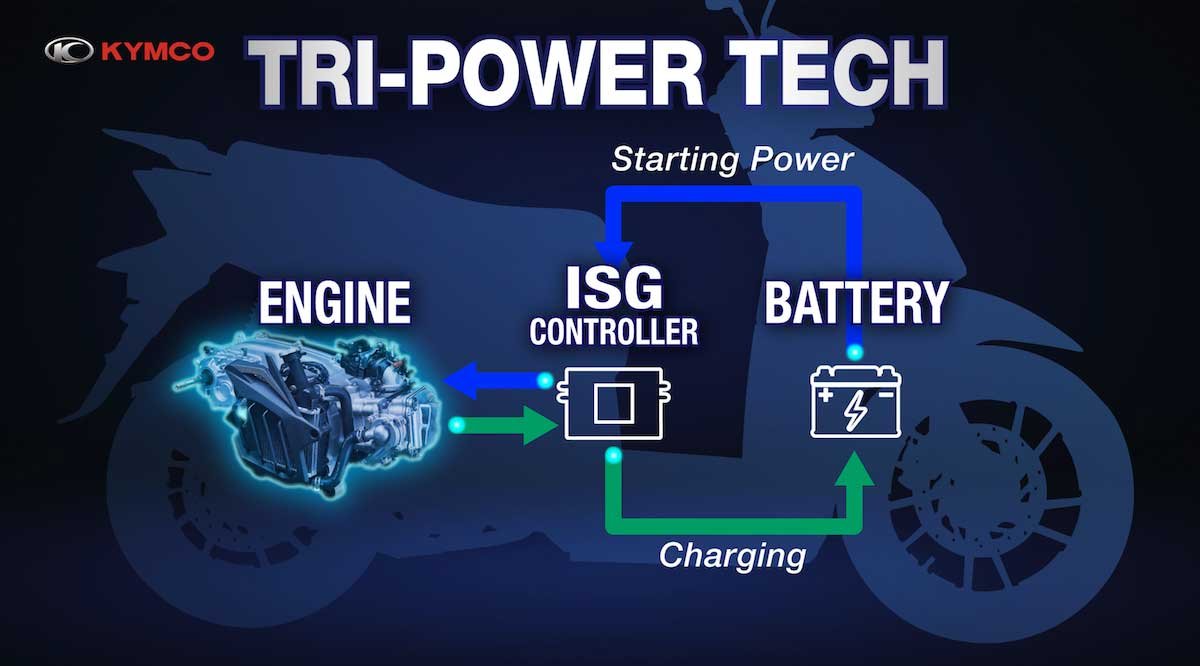 Sistem hybrid yang digunakan saat ini pada umumnya memanfaatkan baterai berdaya besar atau hybrid parallel. Sedangkan yang digunakan Kymco memanfaatkan motor listrik integrated starter-generator (ISG) yang disinkronkan ke mesin melalui sistem kendali modul Tri-Power Technology (TPT) Boost. Hampir mirip sistem smart hybrid Suzuki.