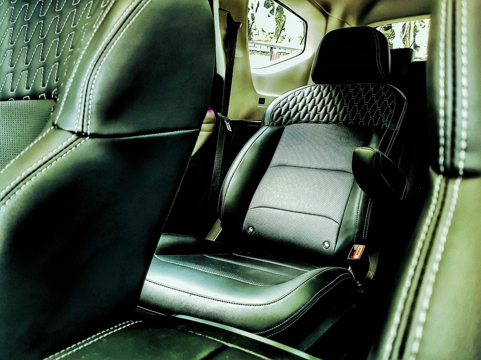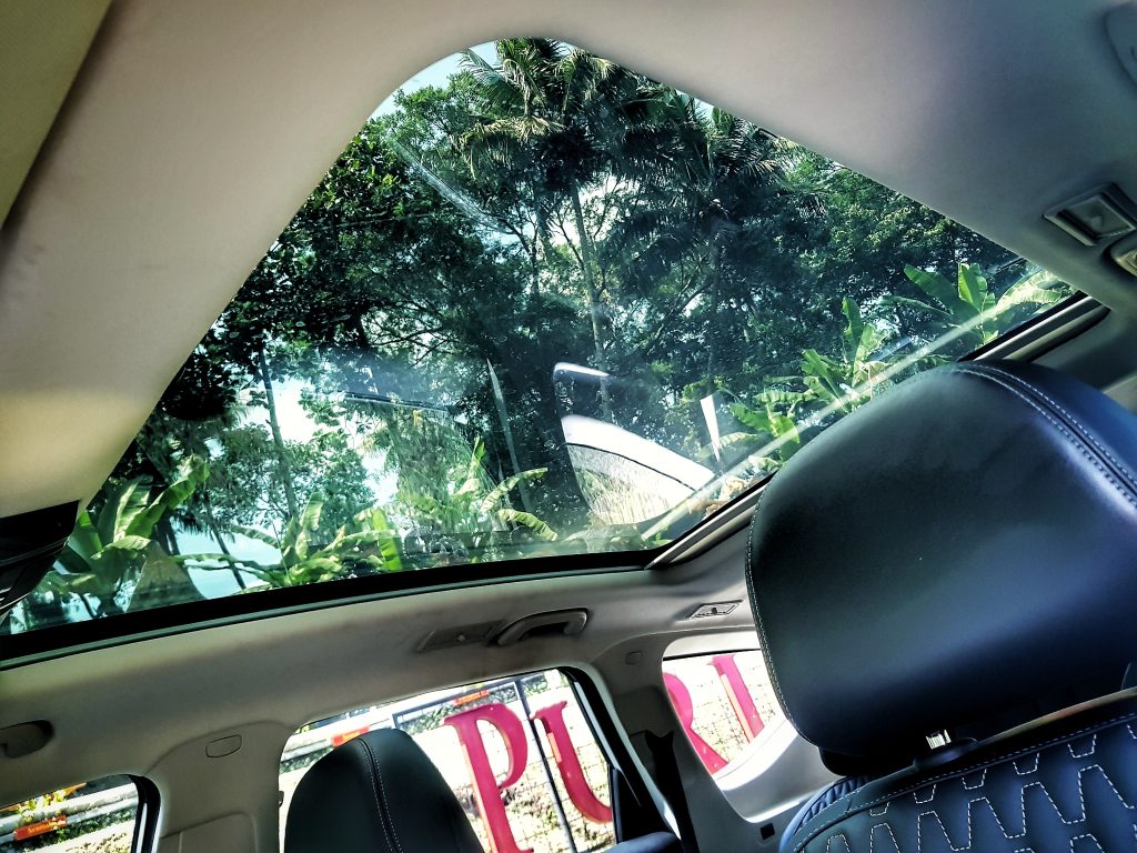 Kesan mewah semakin terasa berkat penggunaan material jok premium yang ergonomis, lengkap dengan bantalan penopang di sisi kanan dan kiri. Ditambah lagi, kehadiran panoramic roof yang membentang hingga baris belakang menciptakan suasana kabin yang lega dan modern.