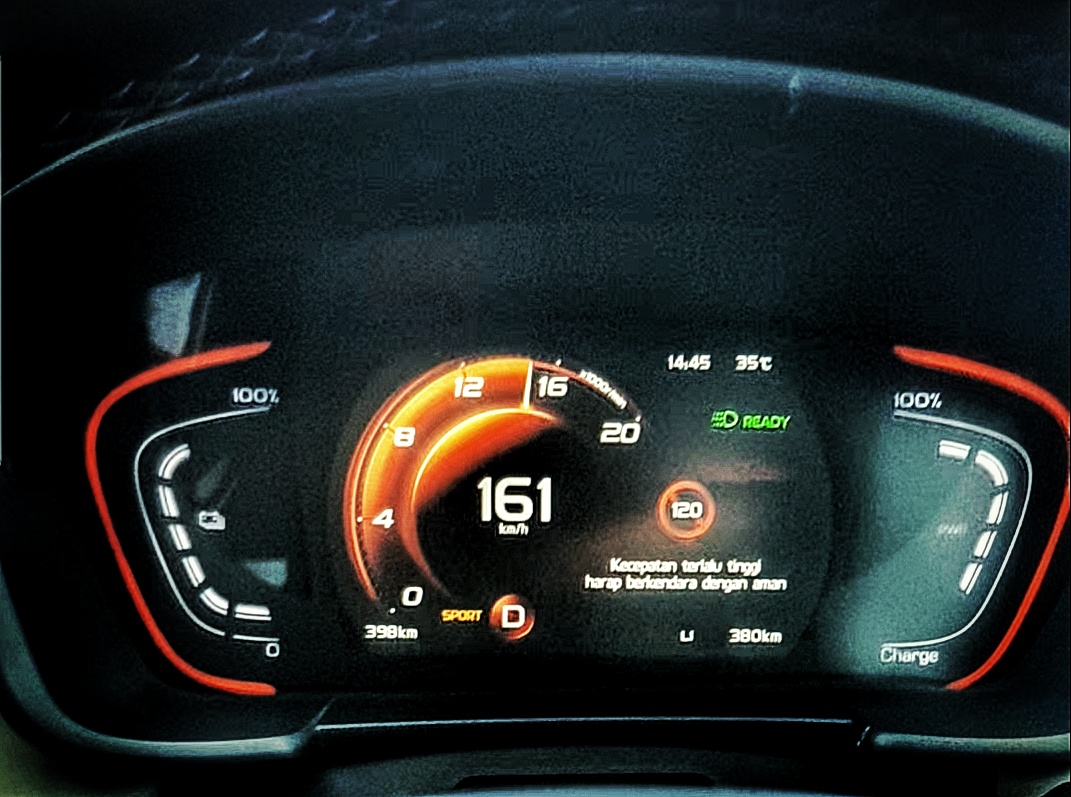Jika di kondisi lalu lintas dalam kota yang padat kami pakai mode Eco dan Normal, di jalan tol kami tancap gas pakai mode Sport.
