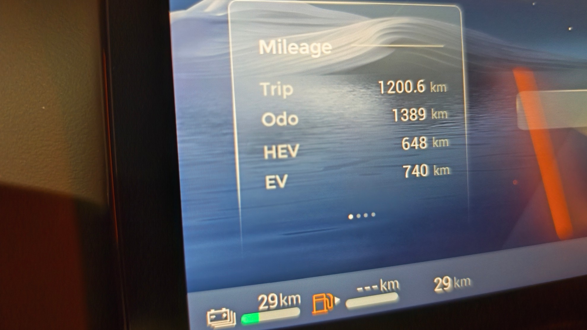 Sepanjang perjalanan, kami menggali empat mode dari sistem tenaga yang ada pada Wuling Darion PHEV ini. Yang pertama adalah EV Max, yakni mobil akan menggunakan seluruh daya listriknya hingga hanya 12 persen, sebelum akhirnya mesin bensinnya beroperasi. Lalu ada EV First, nyaris serupa, tapi konsumsi penggunaan listrik dibatasi hingga 35 persen saja, sebelum mesin bensin mulai mengisi daya listrik baterai.