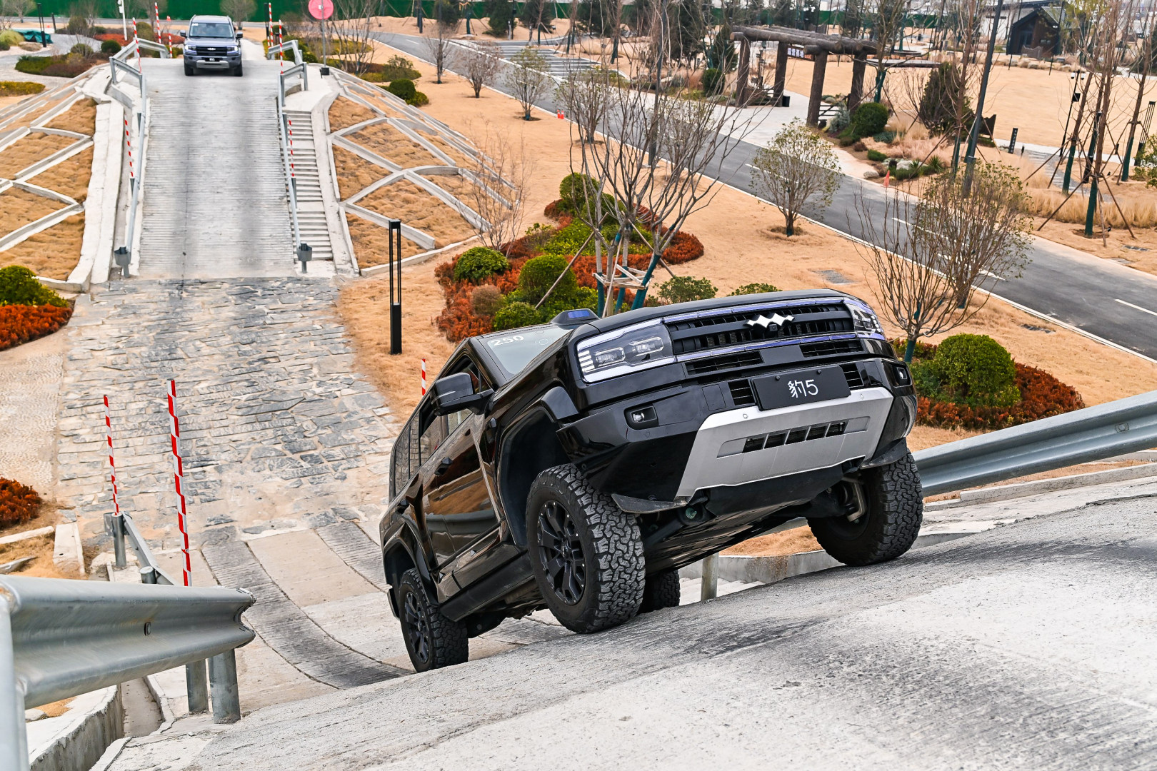 Fasilitas berikutnya adalah Taman Off-Road. Kali ini kami menggunakan BYD Denza B5 untuk mencoba simulasi rintangan yang ada di trek tersebut. Mobil ini dibekali sederet fitur penunjang kemampuan melintasi trek off-road, baik saat menanjak maupun menuruni bukit. Ini baru permulaan…