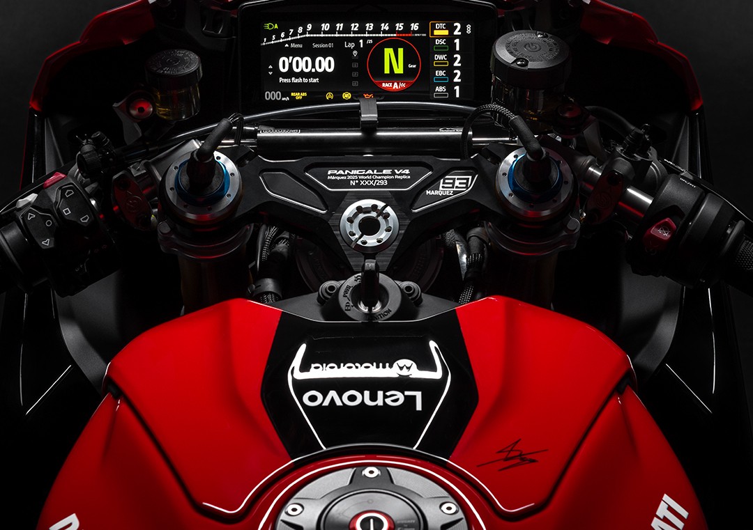 Sesuai labelnya, Ducati mengemas Panigale V4 S dengan livery dan aksesoris seperti pada motor balap yang membawa Marc Márquez jadi Juara Dunia MotoGP 2025.