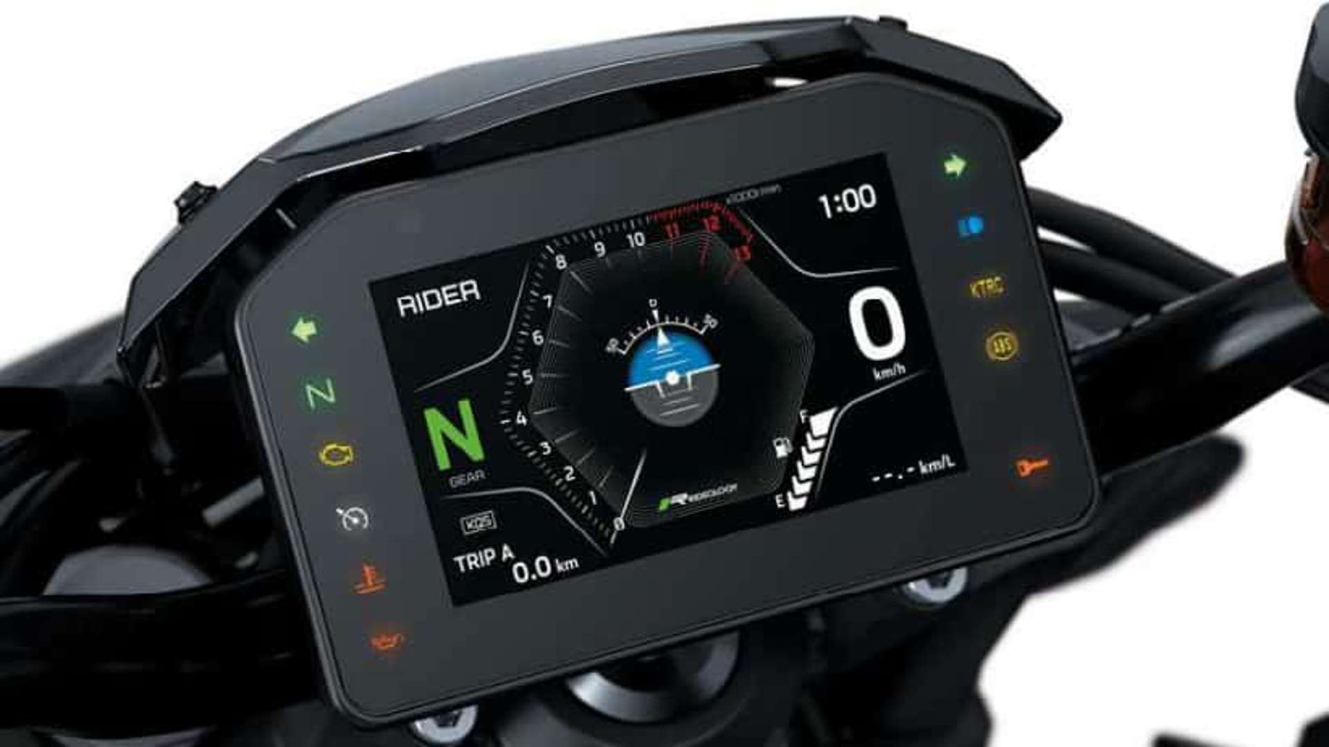 Teknologi elektronik menjadi fokus utama penyempurnaan. Z1100 kini dilengkapi IMU-based rider aids, termasuk KTRC, KCMF, KIBS, KQS up/down, dan Integrated Riding Modes. Seluruh sistem bekerja dengan data enam sumbu gerak sehingga intervensinya menjadi lebih presisi, adaptif, dan tidak mengurangi rasa natural saat berkendara cepat. Panel instrumen 5-inch TFT yang lebih modern kini mendukung RIDEOLOGY THE APP MOTORCYCLE untuk mengakses informasi kendaraan, personalisasi mode berkendara, hingga catatan perjalanan. Pada beberapa pasar, tersedia pula fitur Navigation dan Voice Command.