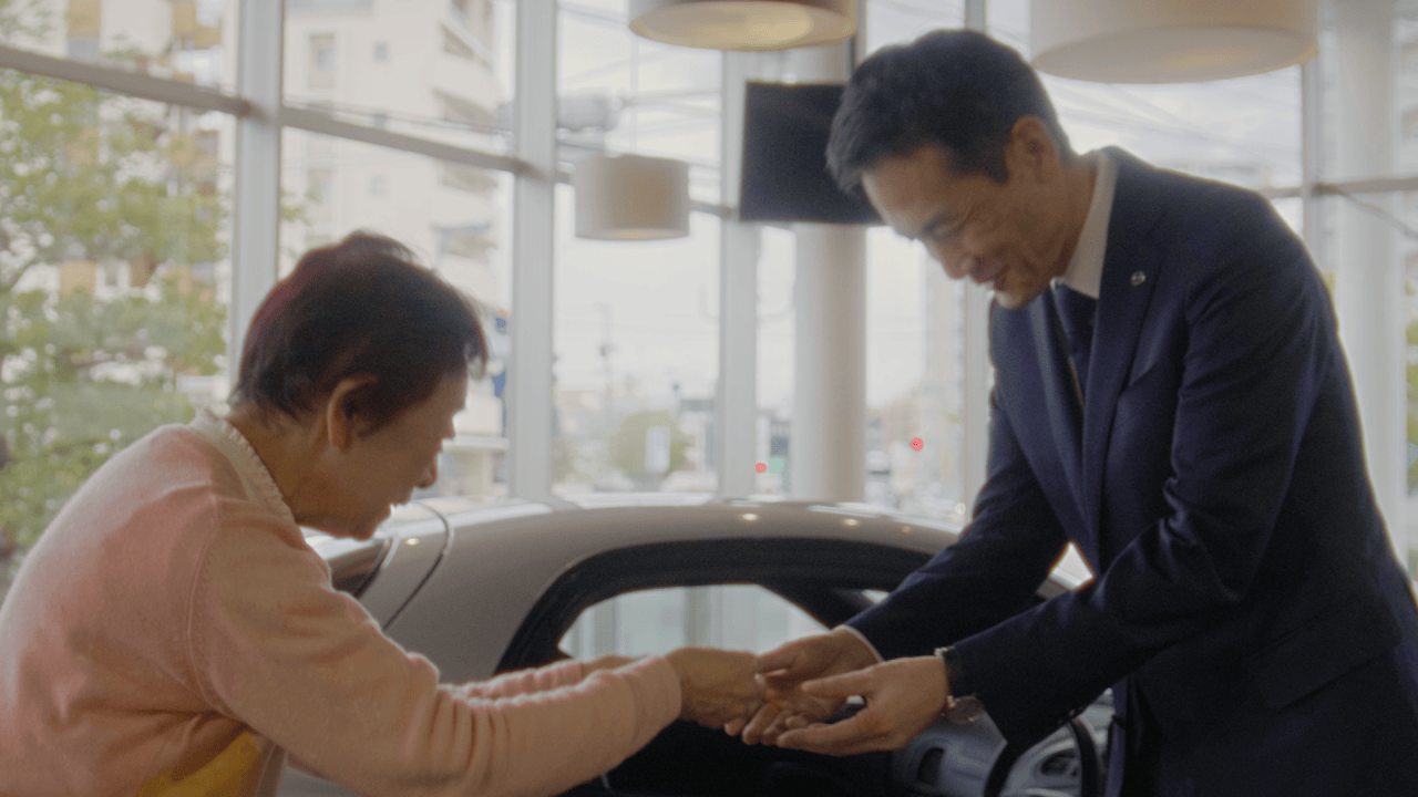 Momen serah terima dilakukan di Kyushu Mazda Akasako Store. Selama bertahun-tahun, Naoko telah menjadi pelanggan setia dari tempat ini. “Berkat perawatan yang dilakukan oleh tempat ini, saya mampu mengendarai mobil saya selama 25 tahun,” ujarnya.
