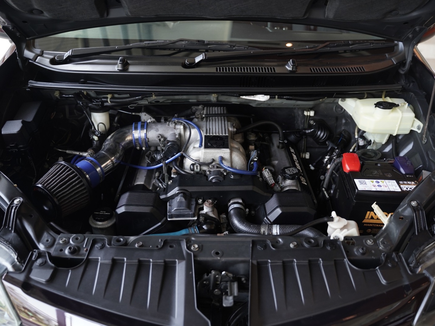 Untuk bagian eksterior, Pro Extreme ditunjuk untuk pengerjaan wrapping, menggunakan produk Avery Dennison asal Amerika. Hasilnya, mobil tampil hitam dengan sentuhan ungu dan marun saat terkena cahaya. Lampu depan pun diperbarui oleh Yoong Motor, menghadirkan tampilan lebih klimis.