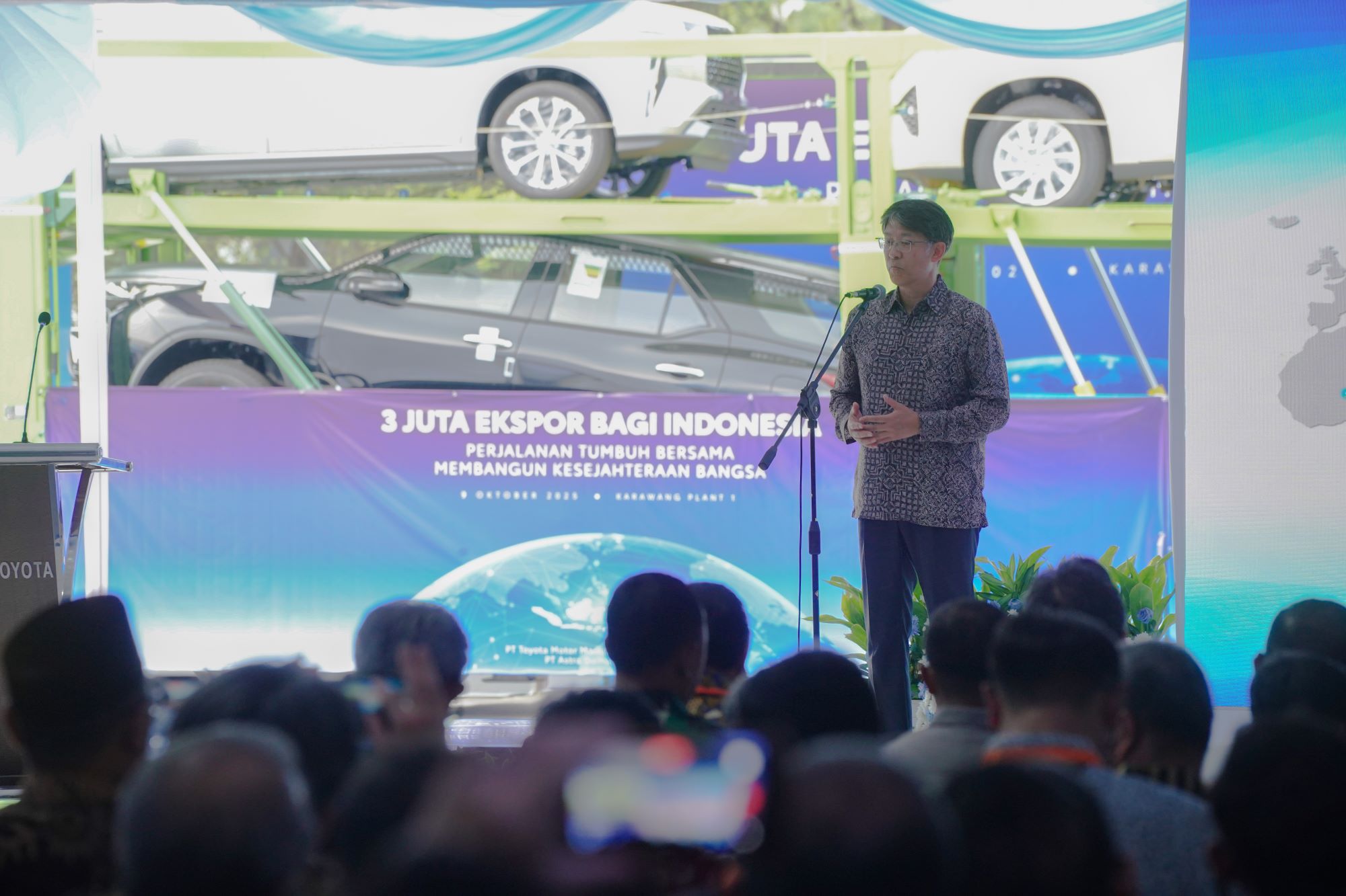 Seremoni pelepasan ekspor tiga juta unit mobil Toyota berlangsung di pabrik Plan 1 PT Toyota Motor Manufacturing Indonesia (TMIIN), Karawang, Jawa Barat. Acara tersebut dihadiri oleh Menteri Koordinator Bidang Perekonomian Airlangga Hartarto serta sejumlah tokoh, di antaranya Wakil Presiden (Wapres) RI ke-10 dan 12 Jusuf Kalla (JK), Menteri Luar Negeri Sugiono, Gubernur Jawa Barat Dedi Mulyadi; dan Presiden Toyota Motor Corporation Koji Sato.